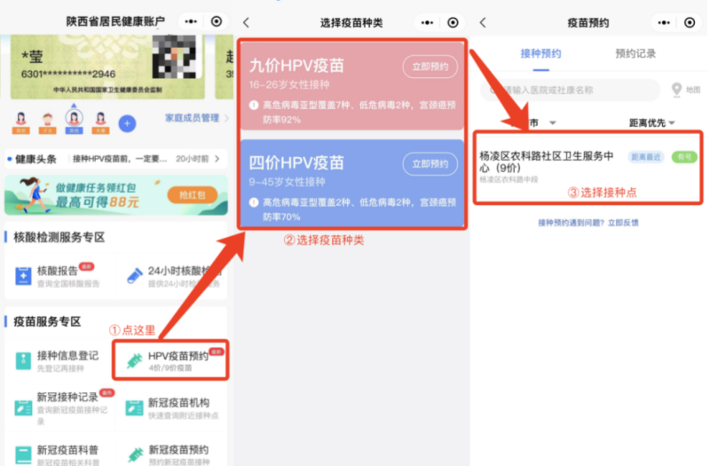 (4)西咸新区四价、九价HPV疫苗通过“【健康陕西公众服务】小程序”进行预约,请市民朋友切勿听信其他渠道四价、九价HPV疫苗信息,以防上当受骗。