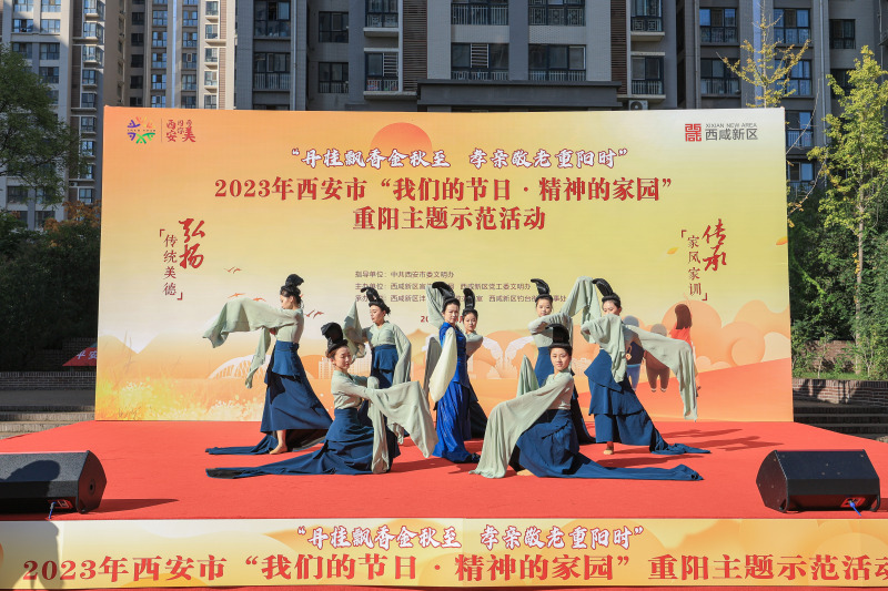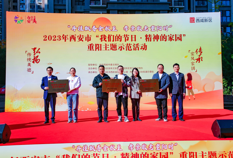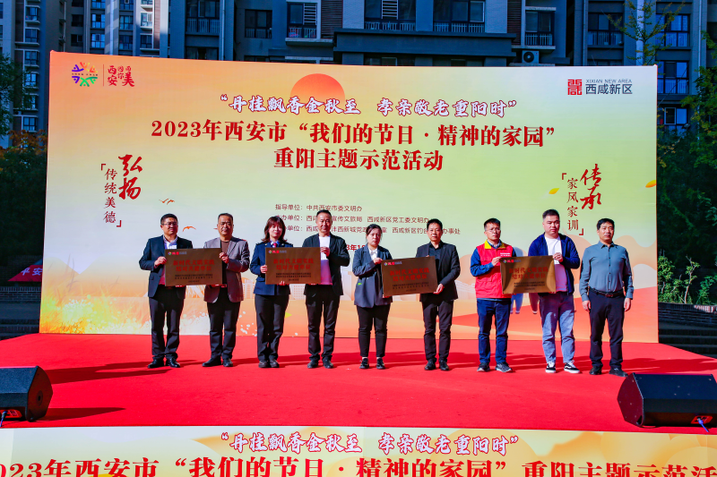 10月20日,在九九重阳节来临之际,由中共西安市委文明办指导,西咸新区宣传文旅局、西咸新区党工委文明办主办,西咸新区沣西新城党政办公室、钓台街道办事处承办的2023年西安市“我们的节日·精神的家园”重阳主题示范活动,在沣西新城康定和园社区中心广场举办。