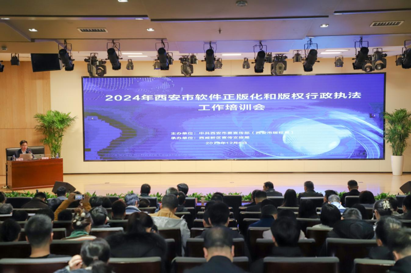 12月6日,由市委宣传部、市版权局主办,西咸新区宣传文旅局承办的2024年西安市软件正版化和版权行政执法工作培训会在西咸新区举办。市级软件正版化工作相关部门,全市宣传(版权)、教育、卫健、文化执法系统单位,市属国企,西咸新区及下属各新城各镇街220余人参加。