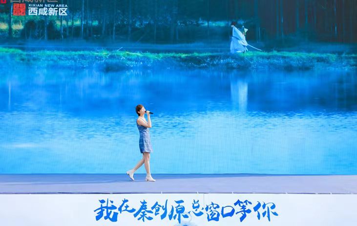在延安推介会专场,西安本地知名音乐人崔一乔带来了西咸新区文旅主题歌曲《十里沣河》。“诗经里的风啊来不及追……”,她用歌声描绘了“十里沣河”的美丽风景。