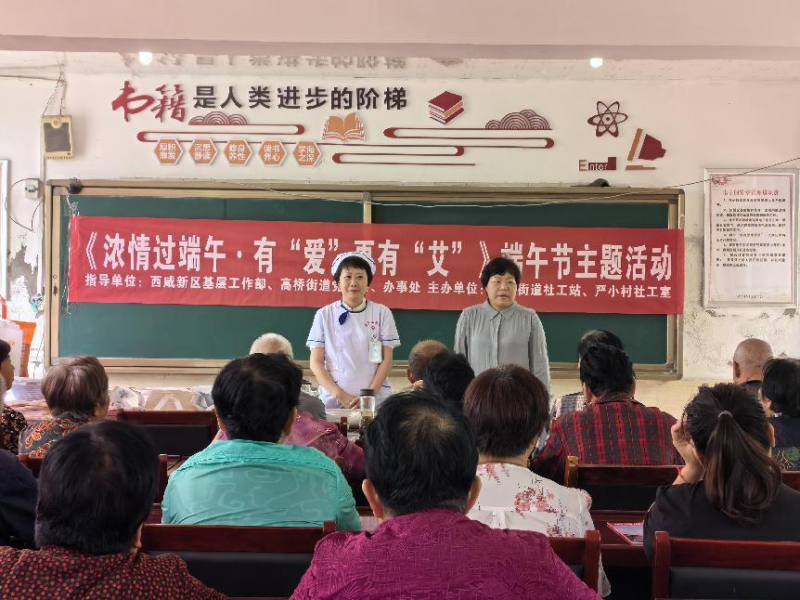 端午,作为中华民族传统节日,也是中国最早的健康防疫节。恰逢端午节来临之际,为进一步关爱社区老年群体身体健康,科学普及中医知识,弘扬中华优秀传统文化,在高桥街道党工委、办事处的指导下,2024年6月6日,高桥街道社工站联合社区(村)管理和网格化服务中心、党建办公室、安全生产与消防办公室、严小村社工室在高桥街道严小村开展了“浓情过端午·有‘爱’更有‘艾’”端午节主题活动。
