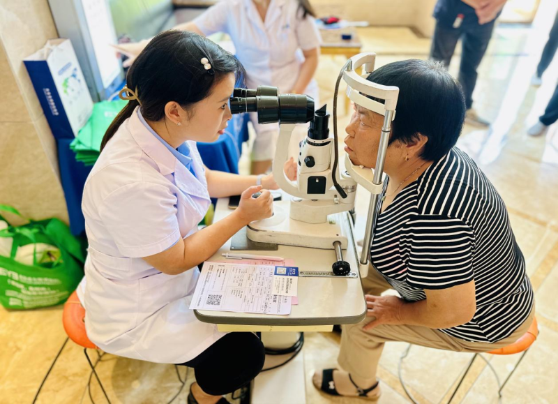 在此过程中,“一路先行”志愿服务队的志愿者们同步向每一位居民进行眼健康知识的宣教科普,包括如何在日常生活中健康用眼护眼,以及宣传针对白内障、青光眼、近视眼、远视眼等常见眼科疾病的防治防控知识等内容,并提醒前来问诊的居民们定期做眼部检查,做到对疾病早预防、早发现、早治疗。