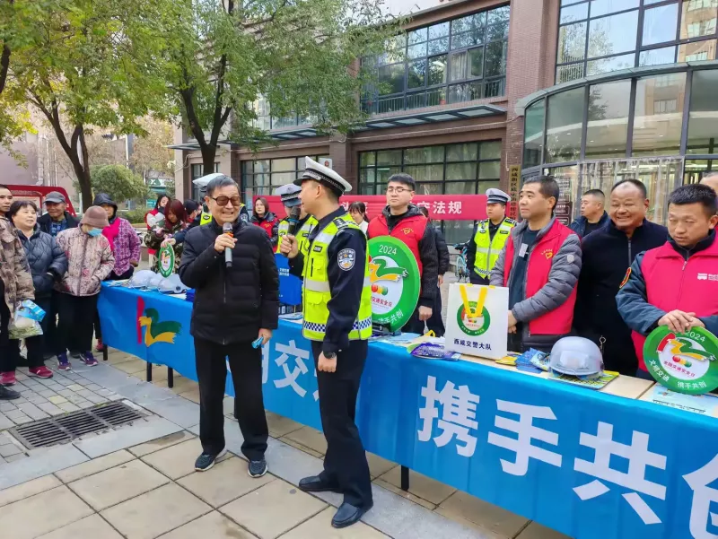 活动中,工作人员结合当前冬季道路交通安全形势,通过摆放宣传展板、悬挂主题横幅、观看交通事故警示教育宣传短片等形式,用通俗易懂的语言向群众详细讲解文明出行知识和超速超载,酒后驾驶、非机动车闯红灯等交通违法行为的危害,提醒群众不要随意横穿马路,不能乘坐农用三轮车,自觉践行“一盔一带”安全守护行动,携家人一起共同遵守交通法规,确保安全文明出行。同时,通过互动互答的形式向群众提问,赠送安全头盔、水杯、抽纸、香皂等精美小礼品,寓教于乐,让群众在轻松娱乐中进一步掌握安全知识,提高自我保护能力,真正树立起“文明交通 携手共创”意识。