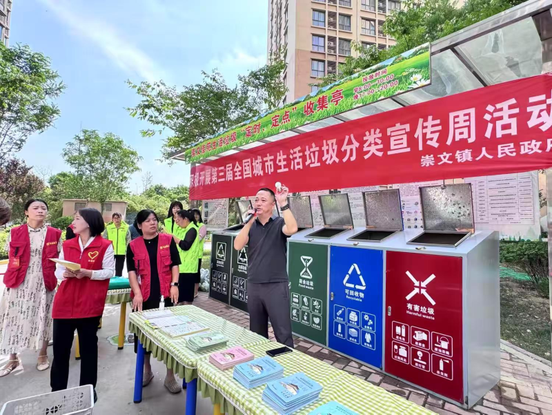 为深入推进全国城市生活垃圾分类工作,5月23日,崇文镇以第三届全国城市生活垃圾分类宣传周为契机,在崇文佳苑三区举办“分类齐参与 低碳新时尚”主题活动,以“讲解+实践”模式推动垃圾分类知识普及,让绿色生活方式走进居民日常。