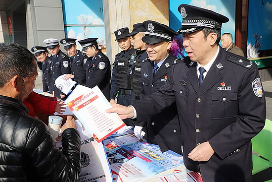 为深入贯彻落实党的十九大精神,进一步推动宪法宣传深入人心,增强全民法治观念,营造尊法学法守法用法的良好氛围。12月4日,西咸新区公安局、沣东新城分局共同组织开展了以“贯彻四中全会精神,维护宪法权威,树立法治意识”为主题的宪法宣传活动。厅法制总队政委孙晓冰受邀参加,区局法制支队负责人张波、沣东分局局长姜绪林,区局、分局相关警种代表参与活动。
