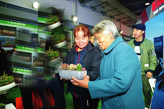 西安沣东生态农业发展有限公司董申介绍:“本次展示有多肉墙,景天科、番杏科,还有不同品种组成多肉拼盘共计30多个品种,目前,多肉植物已经形成产业链条,培育出3000余种。”
