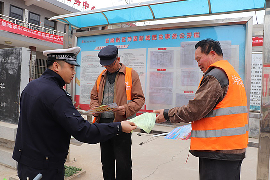 活动中,民警本着“宣传先行”的原则,利用张贴宣传海报,发放宣传材料等形式,向前来农村群众宣传农村道路交通安全常识,讲解无牌无证驾驶、酒后驾驶、乘坐超员客车等带有重大隐患车辆出行的严重后果,叮嘱他们提高安全意识,珍视生命安全,不要无证驾驶机动车、不驾驶无牌机动车,不酒后驾驶,不乘坐非载客汽车,倡导村民安全出行。