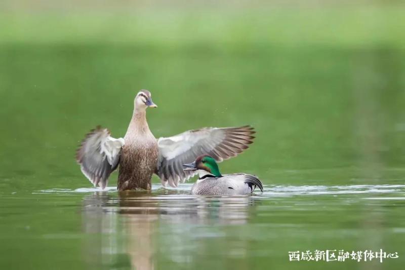 飞鸟掠过水面,碧波荡漾;岸边休闲公园里,绿道伸展。这条绿道由渭河,灞河及其支流浐河、库峪河,沣河及其支流潏河、滈河,以及秦岭环山带组成,称为“三河一山”绿道网络,是西咸新区践行全域治水理念的生动写照。沣河入渭口、伊人广场、沣河生态湿地公园等,一大批河湖综合治理亮点不断刷新城市“颜值”。据不完全统计,目前这里发现的鸟类有37种。“生态环境有没有变化,鸟儿最知道!”站在西咸新区沣河入渭口眺望远处,西咸新区管委会副主任徐军前感慨地说。