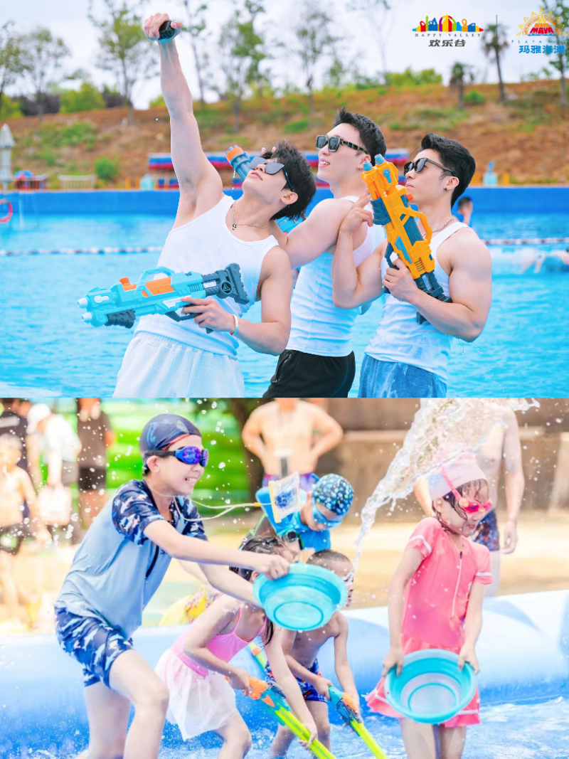 享受被水幕突然“袭击”的惊喜,玩累了就泡进 SPA 池放松,拍照也很出片哦。
