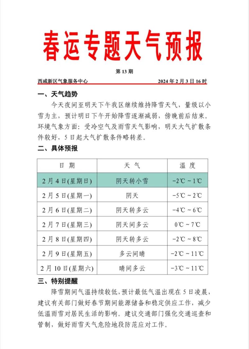 西安市气象台2024年2月3日20时01分继续发布道路结冰黄色预警信号:受前期降雪和低温影响,预计今天晚上到明天白天,西咸新区将出现对交通有影响的道路结冰,请注意防范。