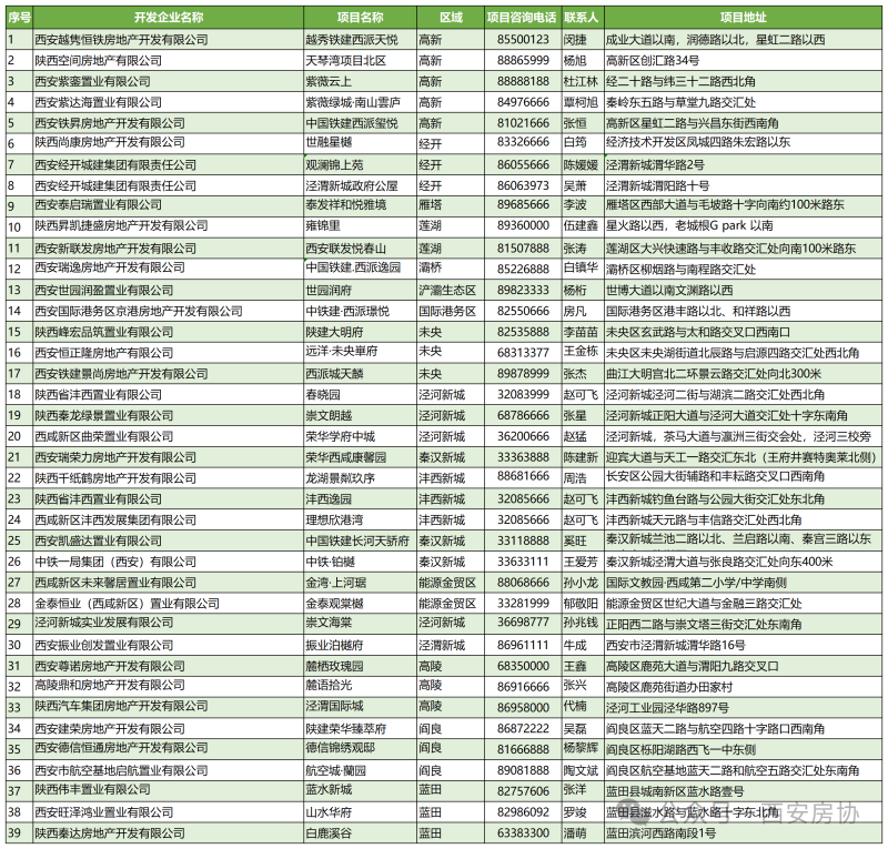 第二批参与西安市住房“以旧换新”活动的房地产开发企业及项目名单