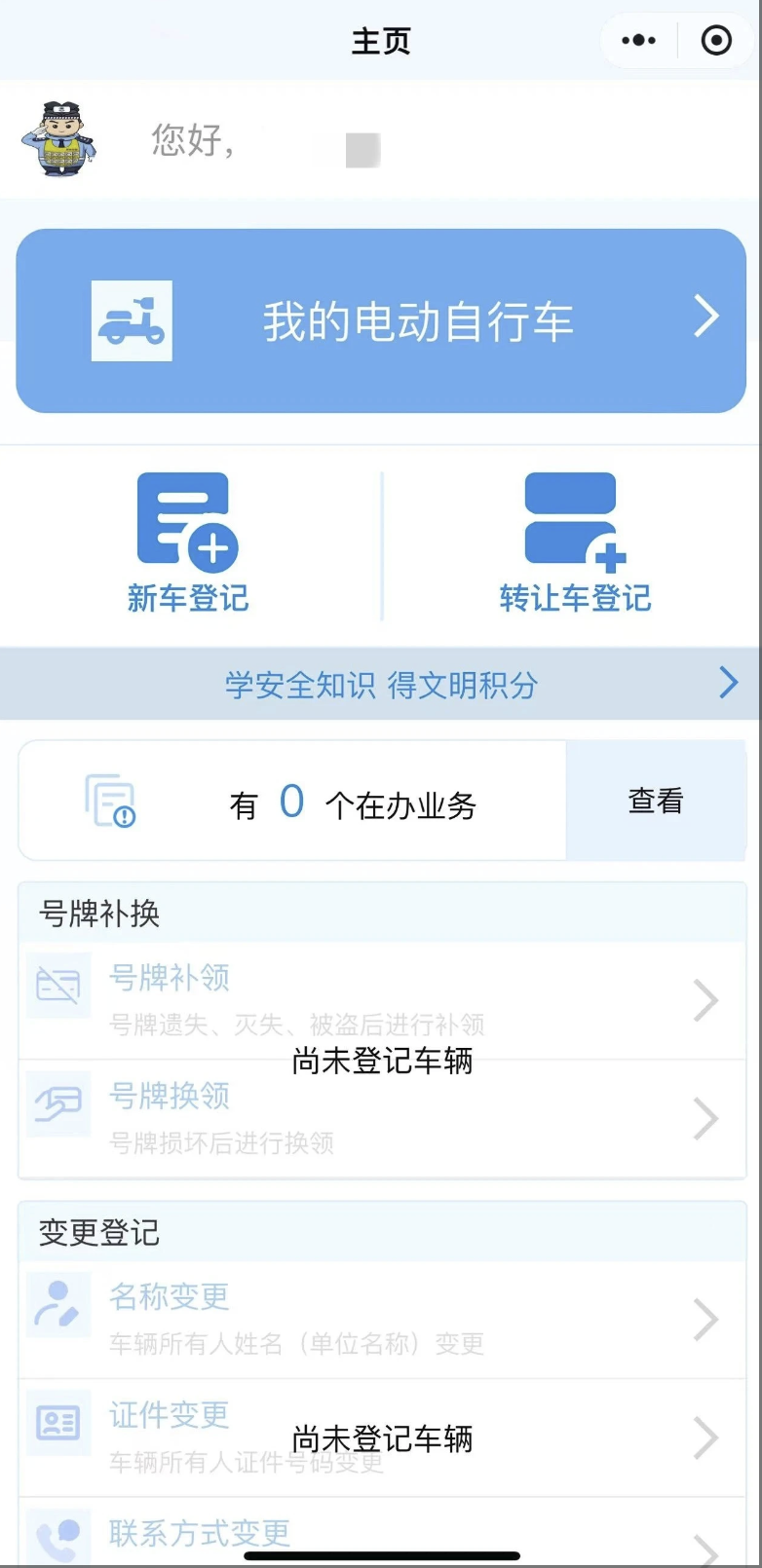 第一步:关注“西安交警”微信公众号,点击“业务办理”,随后点击“电动自行车业务预约”,按照流程填写相关信息,选择合适的挂牌地点进行预约。