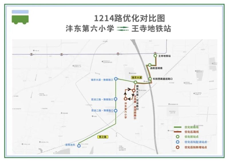新增站点:新军寨村、天章大道南段、柏梁小学、天章大道·丰业大道口、丰业大道·天章一路口、丰业大道·天章二路口