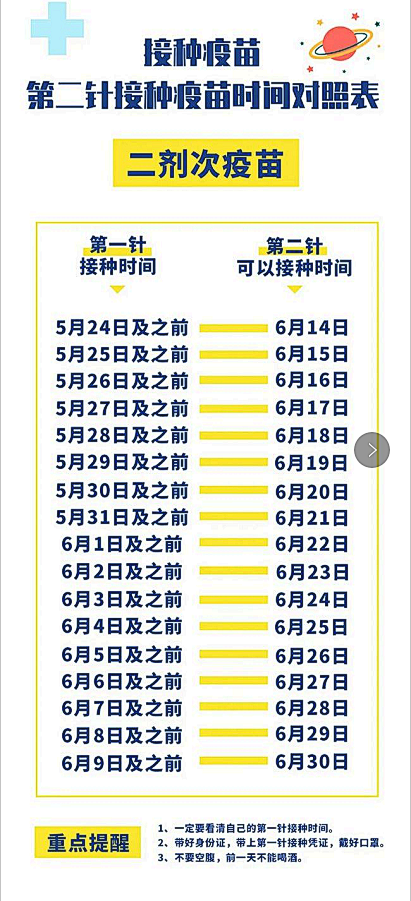 第二针接种疫苗时间对照表