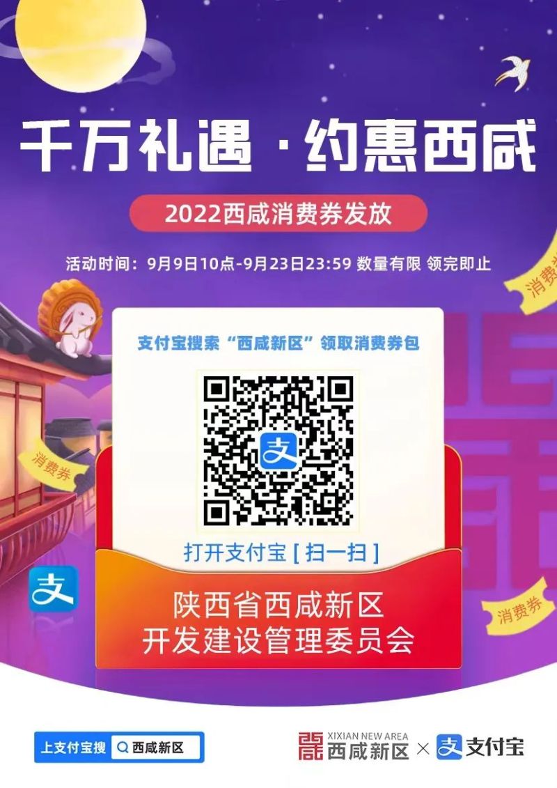 9月9日上午10点,西咸新区第三轮消费券发放,新区将通过支付宝、建行生活APP面向西安、咸阳两地消费者发放总额1000万元消费券。
