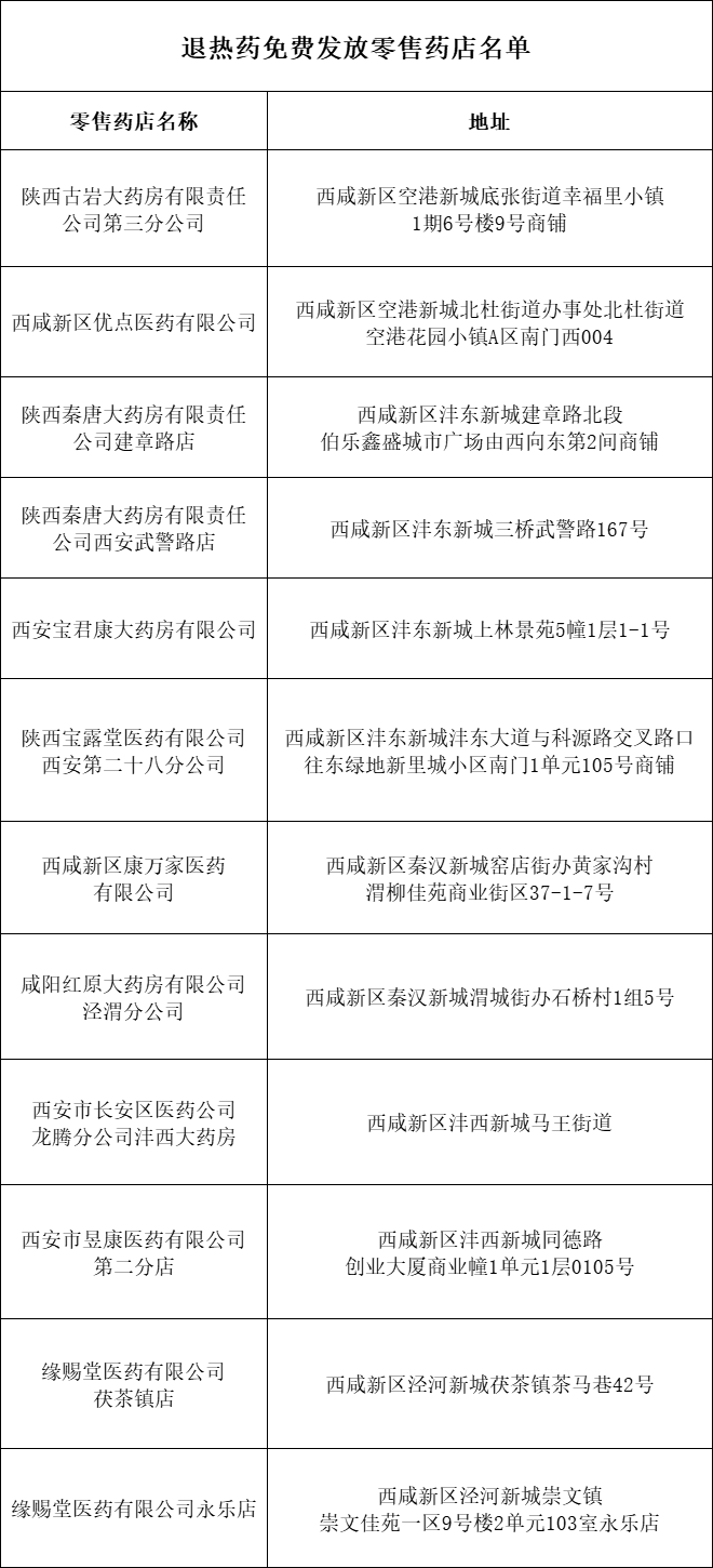 陕西省西咸新区市场监督管理局关于发放免费拆零退热药品的通告