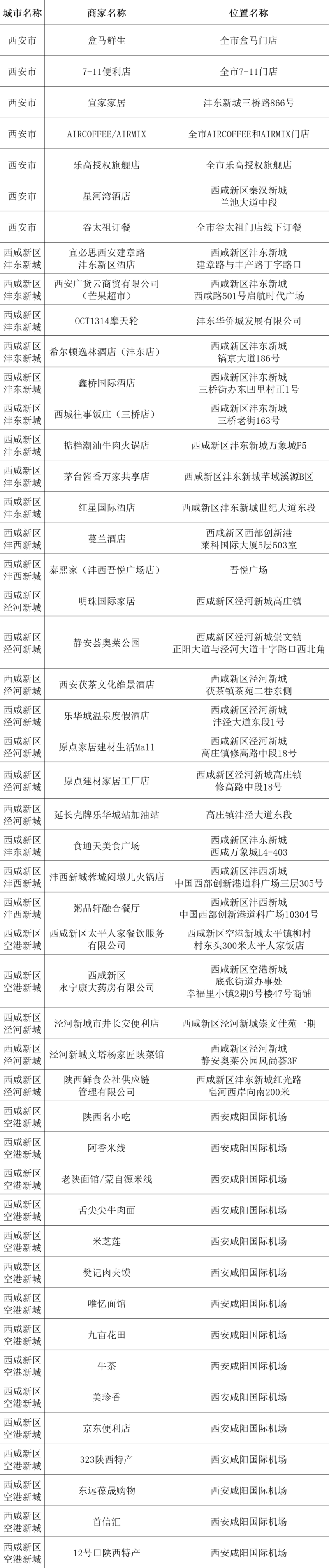 使用范围:西咸新区辖区重点商贸、文旅商家和西安市盒马鲜生、盒马奥莱、711便利店使用(具体名单附后)。