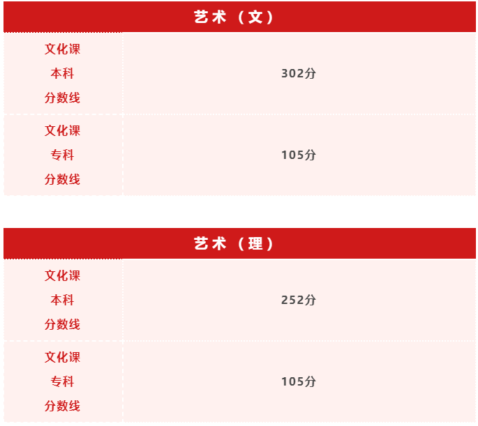 所有艺术类专业(包括组织专业课全省统考的美术类、书法类和播音编导类专业)均执行省教育考试院公布的文化课最低录取控制分数线。部分学校对文化课成绩有特殊要求的,以教育部有关规定及该校招生章程为准。