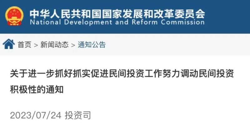 国家发展改革委7月24日发布《关于进一步抓好抓实促进民间投资工作努力调动民间投资积极性的通知》,从明确工作目标、聚焦重点领域、健全保障机制、营造良好环境等4方面提出17项工作措施,努力实现促进民间投资发展各项工作目标。
