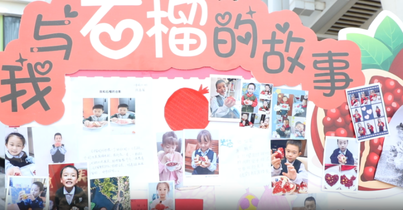 设计石榴手卡、石榴玩偶……同学们以“石榴”为研究对象,在老师的引导下开展探究,并学习用诗歌表达对石榴的喜爱和赞美,用画笔描绘石榴可爱的模样,还学习研究石榴的生长,了解果实内部的结构和营养价值。