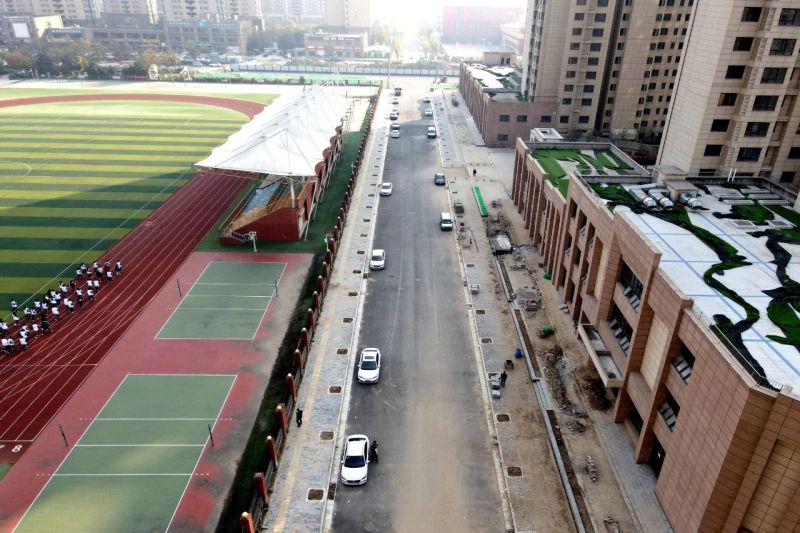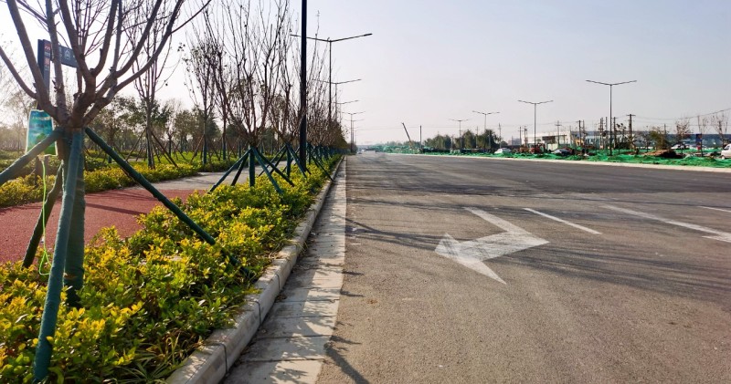 科统四路西起复兴大道,东至科源路,双向六车道,该道路位于西安国际足球中心北侧。目前,该路段已完成全段机动车道沥青下面层铺设,非机动车道、人行道铺装以及路灯安装已进入收尾阶段。