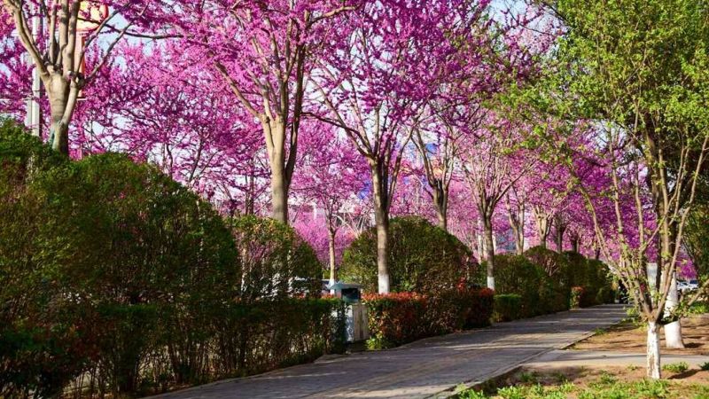 3月末,紫荆花如约绽放,将清华附中秦汉学校和兰池二路装点得如诗如画,花簇锦攒,神怡心醉。
