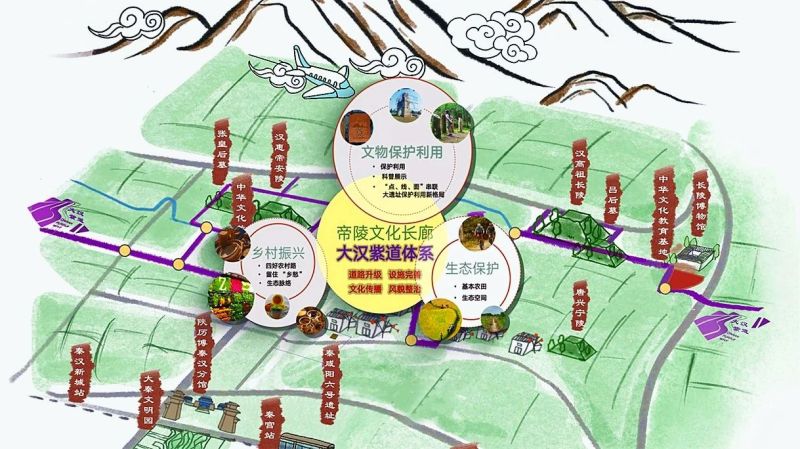 据了解,秦汉新城“大汉紫道”文化旅游及生态环境整治工程秉持“保护为先”理念,坚持“不拆、不建、不挖”原则,按照“汉遗址+汉文化+文物主题游径+文化IP”规划思路,以环境整治和景观提升为主,构建探寻帝陵遗址厚重历史、体验黄土台塬田野风光、感受优秀传统文化的特色研学游线,打造沉浸式品味历史文化、体验式感受自然之美、交互式带动乡村振兴的多元特色文旅廊道。