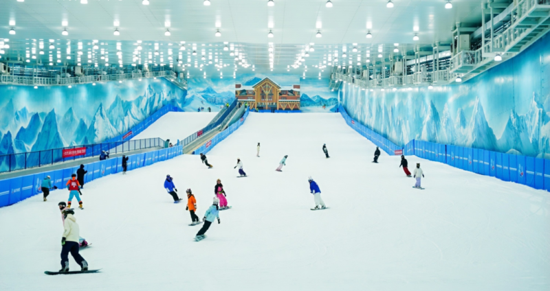 今年5月1日开业试运营的际华冰雪·西安冰雪中心,是西北地区最大的全天候室内综合冰雪运动中心,不仅建有面积约1.6万平方米的室内滑雪场,还有室内滑冰馆、多功能综合训练馆、冰雪酒店及相关配套设施,与陕历博秦汉馆形成了古与今、动与静、文与武的IP大联动。