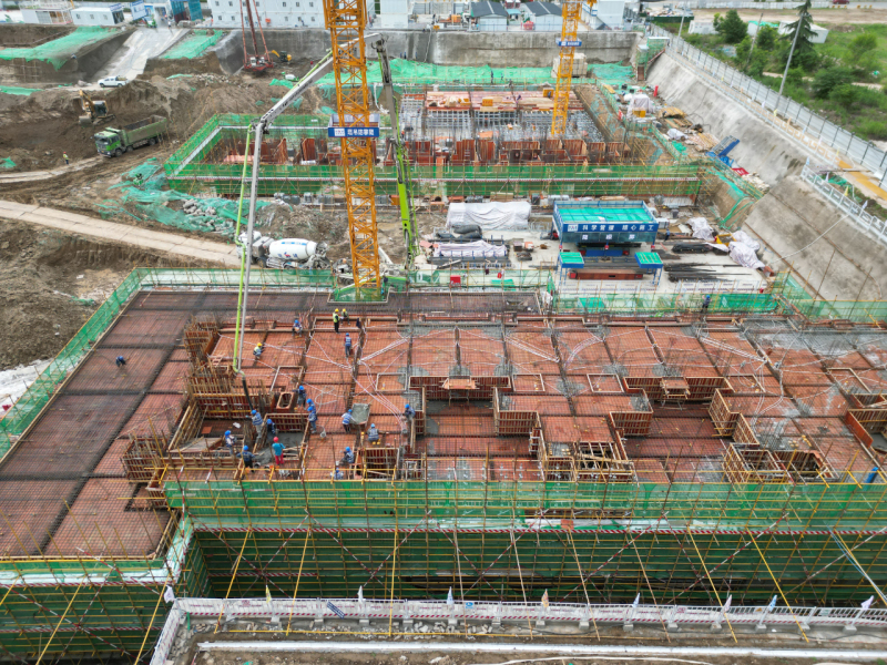 在项目施工现场,模板支设、钢筋绑扎等多个工序穿插施工快速推进,朝着项目整体交付目标全力冲刺。