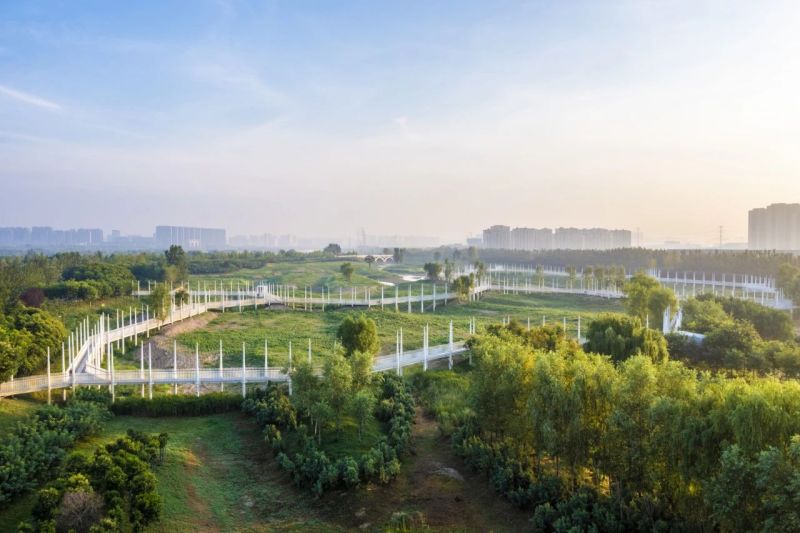 公园位于创新港东侧,分为现代活动、自然修复、文化岛屿3大功能区,设有恢复重建、合理利用、湿地保育、服务管理、宣教展示5大板块,是集水生态修复治理、市民亲水休闲、科普教育实验、郊野自然观光等功能为一体的城市生态湿地公园。园中栈道盘盘囷囷,脚下河水潺潺而过,来这里临水散步,从水面吹来习习凉风,最适合消解夏日暑热。