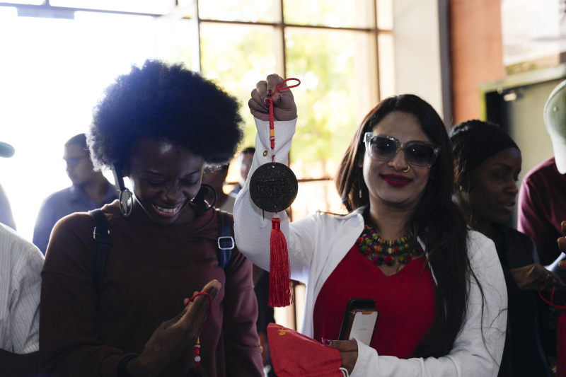 品茯茶、纳“茯(福)”牌。踏进中国茯茶文化博物馆大门,记者们就收到了来自茯茶镇满满的热情。“在我们国家,平常喝茶的时候会在里面加一些黄油、牛奶、香料等等,以适当平衡茶的苦味。但是今天在这里喝到了什么都不加的茯茶,没想到茶原本的风味也这么好喝。” 来自塞舌尔广播公司的记者Angela Alisha Emmanuella Rachel和来自赞比亚国家通讯社的记者Linda Mukupa Mupemo收到工作人员送来的茯茶和“茯(福)”牌,频频碰杯间感叹道。