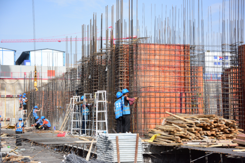 “目前,7栋楼全面启动建设,1-6#楼工程桩施工完成,7#楼工程桩施工接近尾声。同时,5#楼负二层墙柱钢筋绑扎、满堂架搭设和车库垫层、防水保护层浇筑也在有序进行中。”项目负责人介绍道。