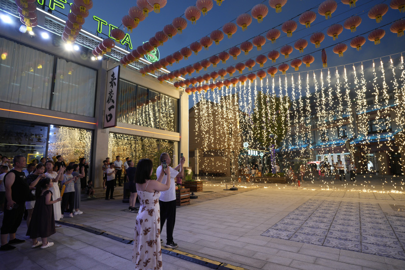 霓虹闪烁,烟火璀璨。7月25日,2024年西安市“长安夜·夜未央”夜间消费季暨西咸新区“悦西咸·夜精彩”活动在泾河新城茯茶镇街区启动。