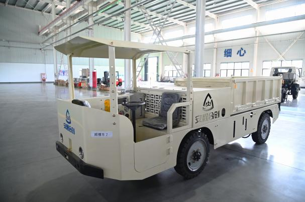 安程合创占地面积约1万平方米的1号生产厂房内,几十台矿用特种车辆整齐排列,其中最引人瞩目的,当属今年最新研发生产的矿用顺槽人车、顺槽料车和抓管车3个全新车型。