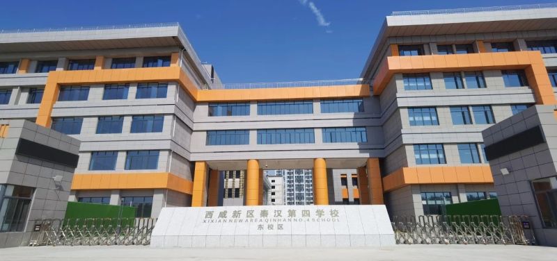 西咸新区秦汉第四学校东校区、西校区周边分布着多个大型居住社区,开建伊始就备受关注。学校东校区位于昭宣一路,主要建设教学楼、行政楼、图书馆、餐厅、风雨操场等设施,共设置36班小学和24班初中。西校区位于汉风四路,主要建设教学楼、行政楼、体育馆、餐厅、操场等设施,配建36个班级,另预留12个班级。