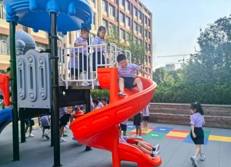 “我们把健康的身心素质与优秀的道德品质放在首位。”张颖认为,全面发展首先得有良好的身心素质。宽敞的校园里,有一座幼儿园常见的滑梯城堡,张颖说,低年级孩子必须得玩耍、运动,每周4节体育课,以及课间10分钟,老师都会带领孩子开展各种运动。