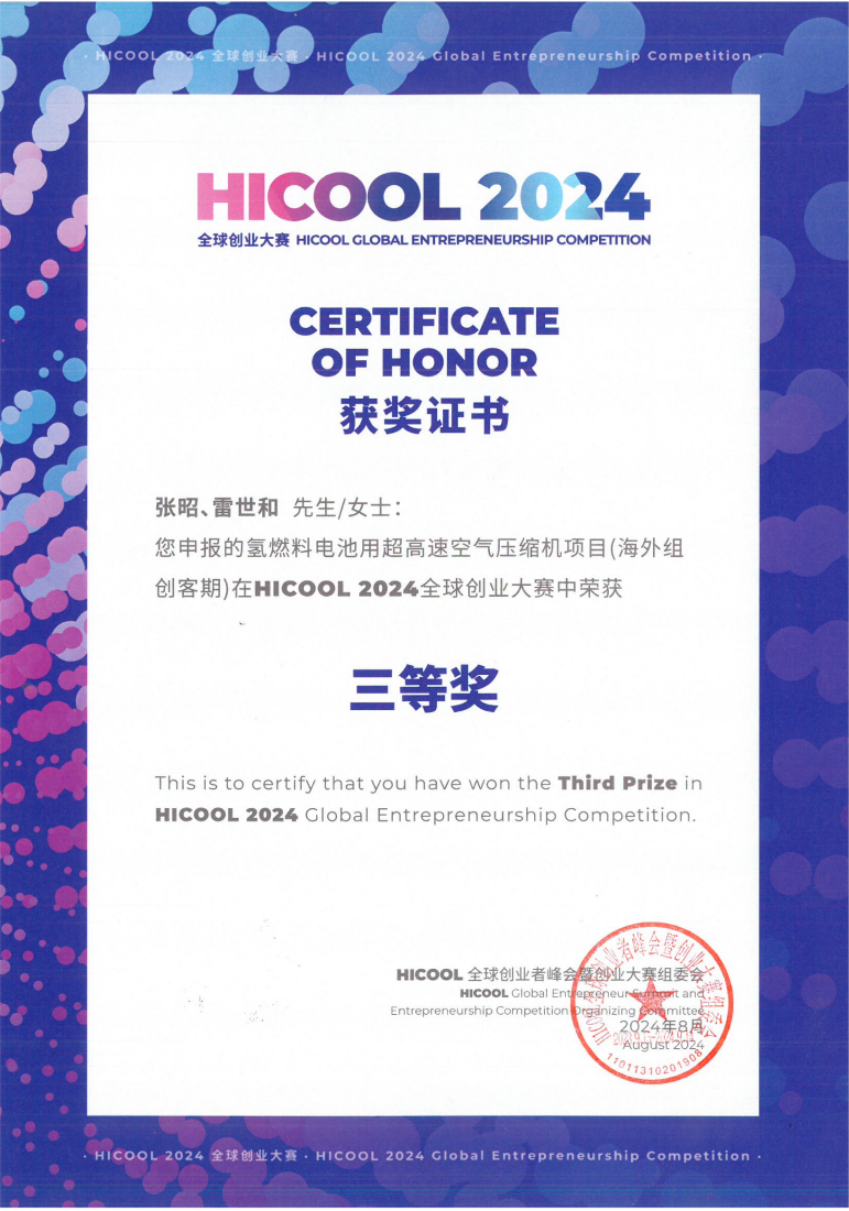 自成立以来,秦氢元始终致力于技术创新与产品研发,不断突破行业技术瓶颈。2024年,秦氢元团队展现出了非凡的研发实力与创新能力,斩获HICOOL2024全球创业大赛三等奖并通过2024年陕西省创新型中小企业认定。公司团队不但实现了燃料电池空压机0到1的突破,还稳步推进并推出了15kW、25kW、35kW及带能量回收等多种规格空压机产品,关键指标实现了领先。