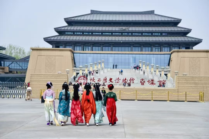 陕历博秦汉馆南广场分布着“馍都加油站”“关中老碗”“秦九味”“秦朝来客”等多家特色餐饮店,可以品尝多样的陕西风味。你也可以前往附近的全国文明村刘家沟,品尝特色农家饭,体验传统民俗文化。