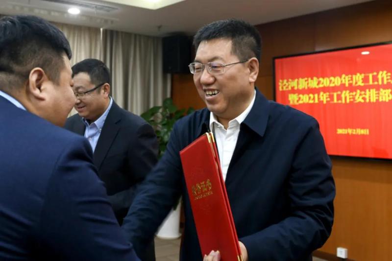 会议宣读了泾河新城2020年度优秀单位和先进个人表彰决定,对优秀单位和先进个人进行了表彰。各部门、各单位签订了2021年度目标考核责任书。自然资源和规划局、招商二局、泾干街道、泾河集团分别作了表态发言。