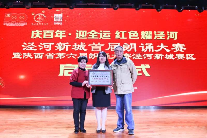 启动仪式上,陕西省著名朗诵艺术家、陕西省第六届朗诵大赛组委会评审组主任海茵,陕西省人民艺术剧院国家一级演员,陕西省第六届朗诵大赛组委会副秘书长、评审组副主任董少敏,共同为泾河新城赛区颁发授权牌。泾河新城党委宣传部部长冯晓荣宣布泾河新城赛区正式开赛!