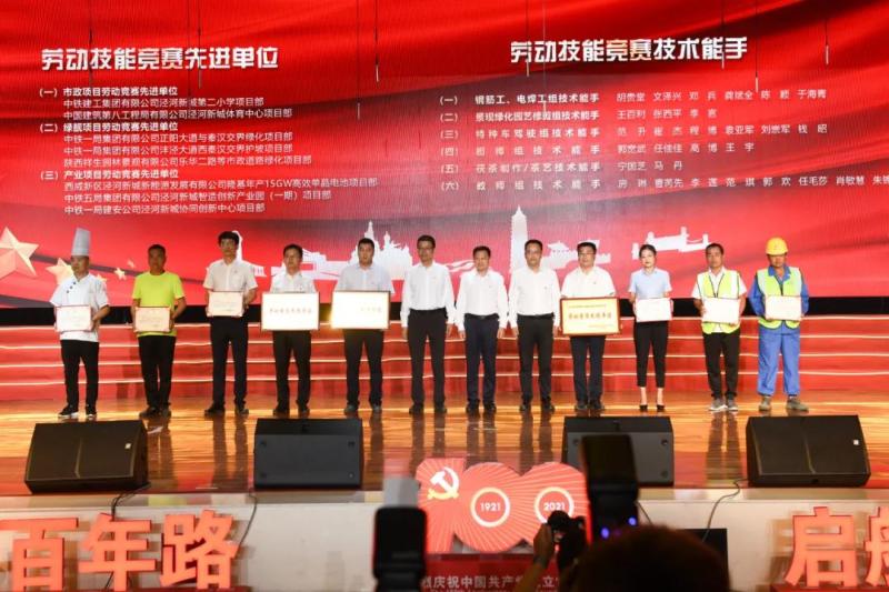 在表彰环节,泾河新城还为荣获2021年新城劳动技能竞赛的获奖单位和个人进行了颁奖。其中,8家企业获“劳动技能竞赛先进单位”荣誉,29名个人获受“劳动技能竞赛技术能手”荣誉,4家企业获“五一劳动奖状”,10名个人获“五一劳动奖章”,5个单位(部门)和企业获“工人先锋号”荣誉。