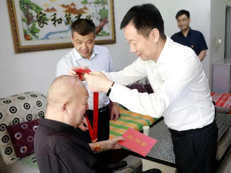 贺键先后前往北杜街道花园社区老党员李振帮和太平镇老党员程宏亮家中,同他们促膝交谈,拉家常、问冷暖,关切询问他们的身体健康状况和日常生活情况,为他们佩戴“光荣在党50年”纪念章并致以诚挚的祝贺和崇高的敬意,同时,还送上了慰问金和米面油。李振帮、程宏亮佩戴纪念章后,嘴角露出笑容,用手触摸着纪念章,脸上的皱纹里写满骄傲,对党的关怀和温暖表示感谢。
