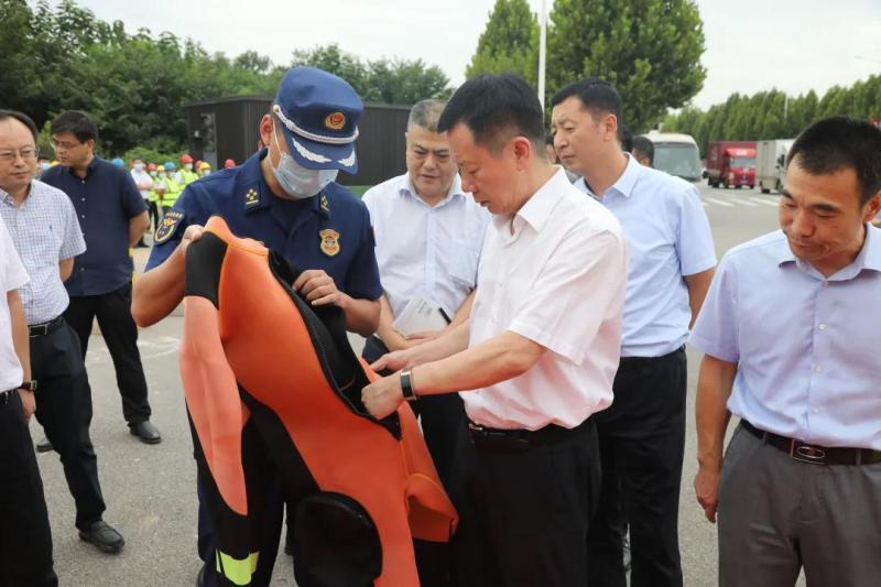 “积水点最深的地方是多少?”“如果大雨导致积水,是否有处置预案?”在北杜物流产业园城市积水点,贺键详细询问了积水点情况、防洪设施配备情况及防汛举措。在现场得知防汛抢险队将开展防汛应急演练后,贺键鼓励大家保持良好的状态,加大防汛技术和技能培训力度,完善各类预案、细化强化各项措施,全面提升防汛应急抢险救援救灾水平。