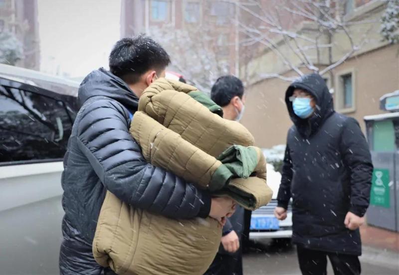 “大家坚守一线的同时,也要保护好自己,这是我们为大家准备的棉被和暖宝宝等物资,把自己一定保护好!”正值冬季,天气寒冷。连日来,后勤保障工作人员及时将消毒液、防护服、手套等防疫物资,以及军大衣、暖宝贴、自热火锅等保暖防寒物品送到防疫一线。