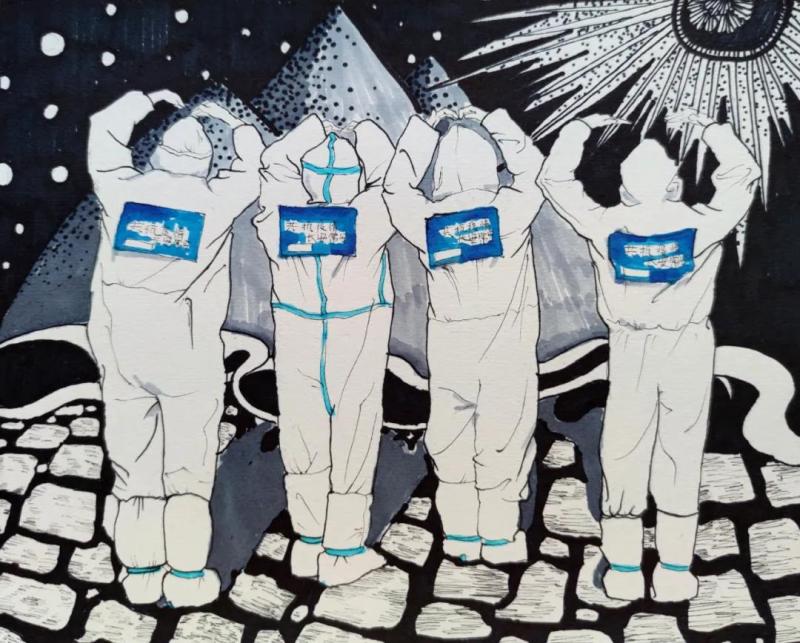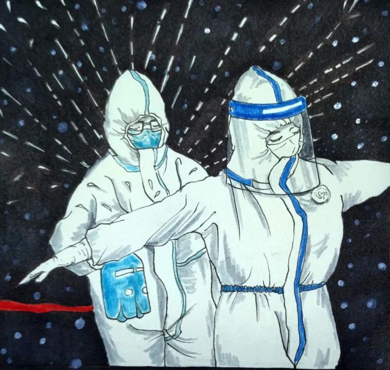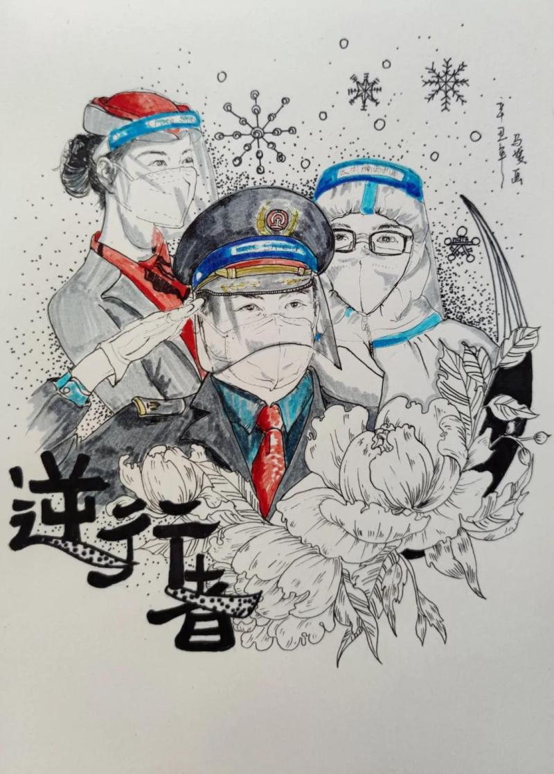 “艺术来源于生活,那些感动人心的瞬间,值得以各种各样的方式被更多人看到。”马媛感慨道,通过这些天的绘画,让她也有了一种同一线工作人员并肩抗疫的荣誉感。