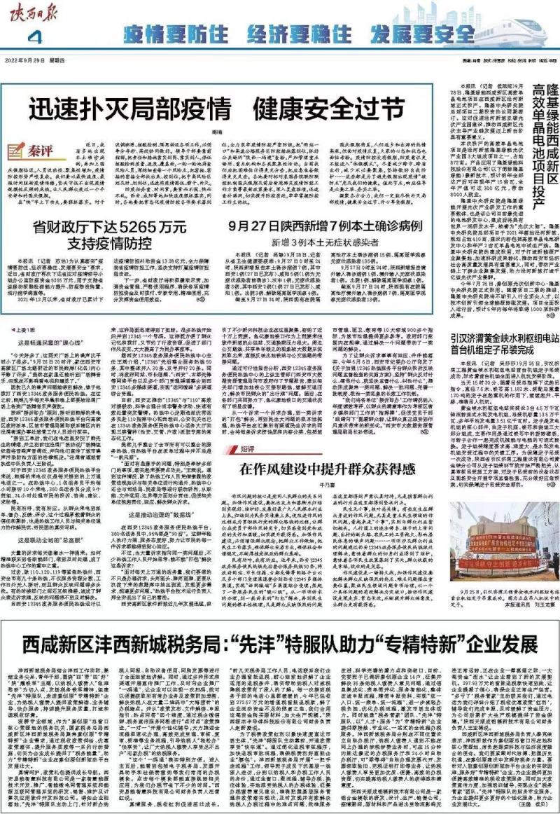 深耕专业领域,作为“秦创原”总窗口核心策源地的税务机关,国家税务总局西咸新区沣西新城税务局聚焦秦创原“专精特新”企业需求,通过税收政策供给、优惠政策落实、提升服务质效等一系列行动措施,切实为企业成长提供了“税务能量”,助力“专精特新”企业在秦创原创新驱动平台发展壮大。