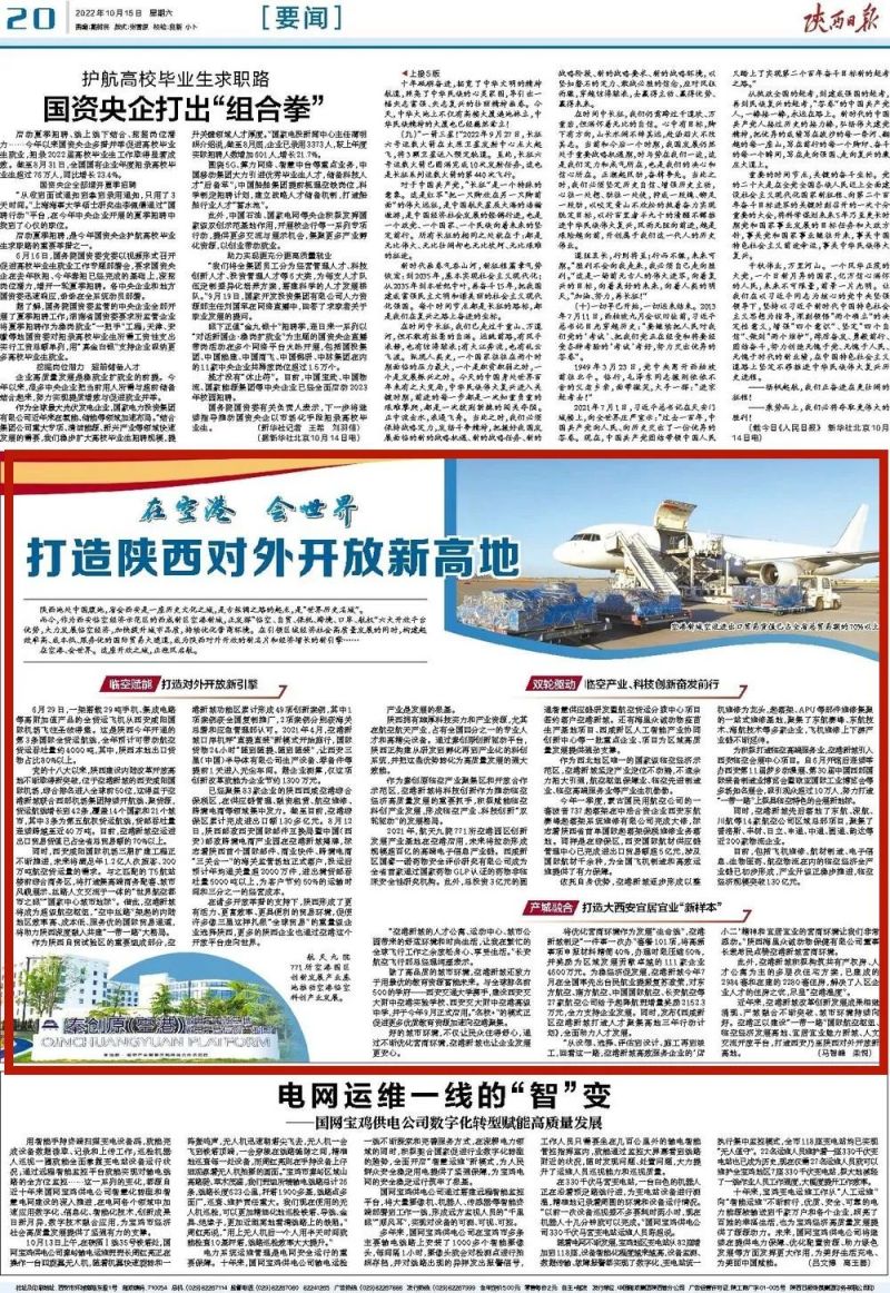 10月15日《陕西日报》刊发长篇报道《在空港会世界打造陕西对外开放新高地》点赞空港新城,在引领区域经济社会高质量发展的同时,积极构建起效率高、成本低、服务优的国际贸易大通道,打造陕西对外开放新高地。
