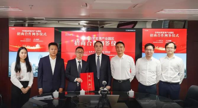聚智创富、集业兴城。11月4日,空港城发集团自贸产业公司(以下简称“空港自贸产业公司”)与深圳天安智慧园区运营有限公司(以下简称“天安运营”)举行视频签约仪式,线上签订空港自贸蓝湾产业园招商合作协议。