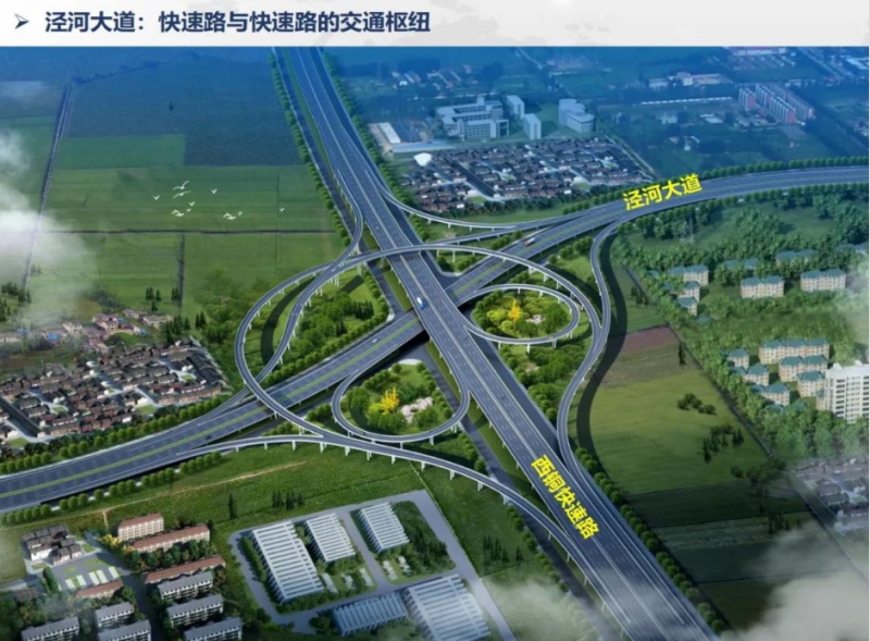 记者注意到:“老西铜”市政化改造项目,在泾河的跨度和枢纽建设力度都非常大,具体而言便是路线长、立交多。改造中共有3处互通式立交,泾河新城就占了2个,分别是聂冯立交和泾河大道立交。