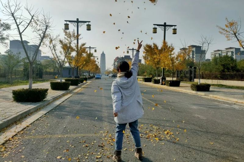 泾河新城崇文塔东路实施“落叶缓扫”,打造了一条网红打卡路